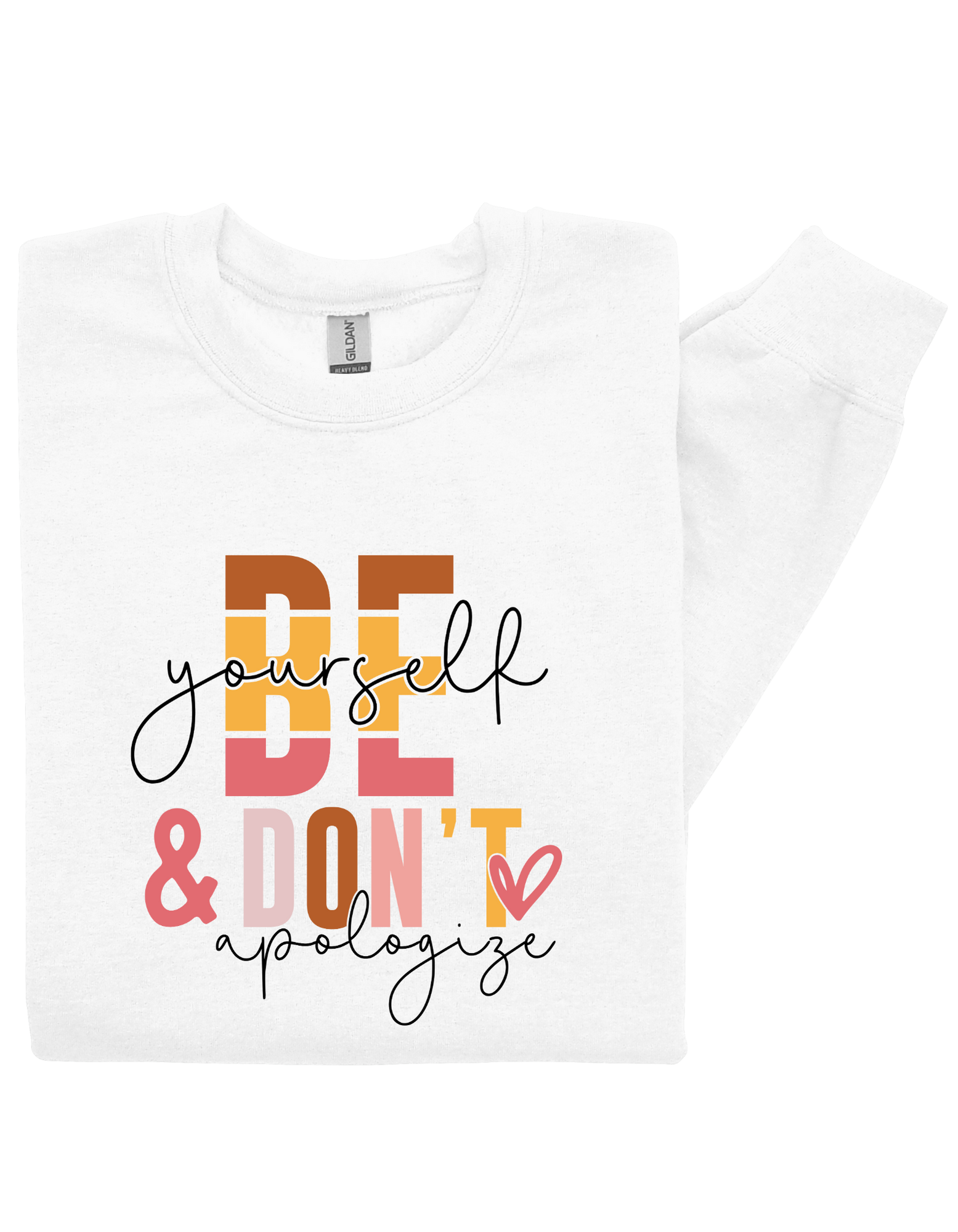 Be Yourself & Don’t Apologize Sweatshirt – Empowering Self-Love Quote Crewneck